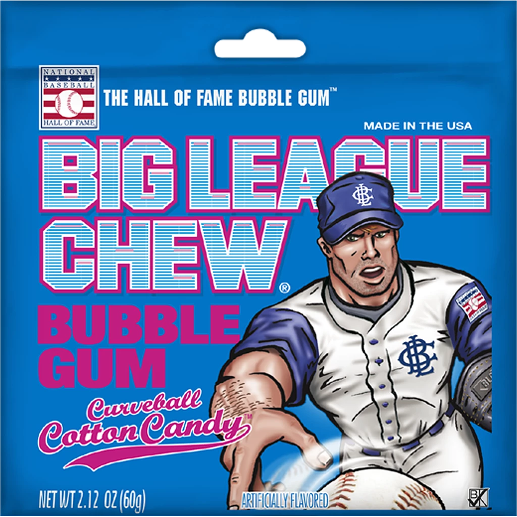Big League Chew® Curveball Cotton Candy is the Hall of Fame Bubble Gum! Shredded bubble gum in a stay-fresh pouch that keeps the juicy flavor locked inside. A fan favorite since 1980, Big League Chew is bubble gum fun for everyone!