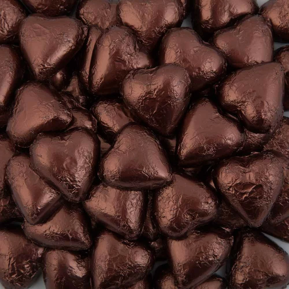 Quantity: 500g Bag contains approximately 60 chocolate hearts. The 5kg bulk box contains approximately 625 chocolate hearts.
