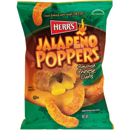 Bite into one of our delicious Herr’s Jalapeño Poppers Flavoured Cheese Curls and it might return the favour. Because behind that big, cheddar cheesy flavour is a zesty little pinch of jalapeño pepper that packs a little zing. Don’t say we didn’t warn you.