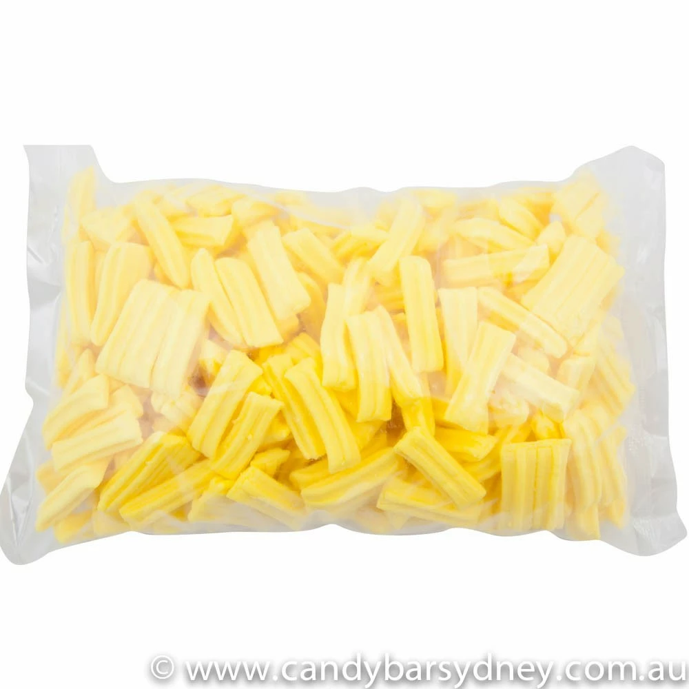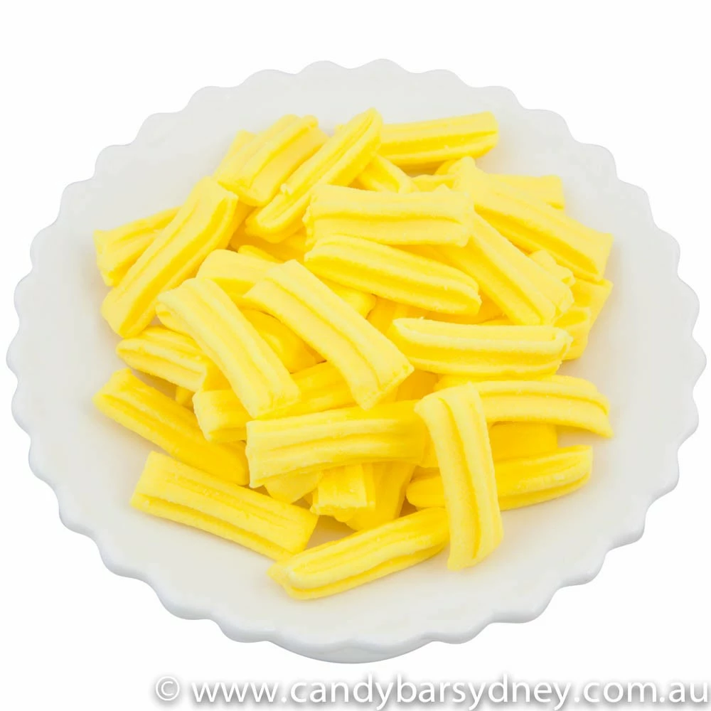 Take a moment to think about the humble lemon. This extraordinary fruit is responsible for so many wonderful and delicious things in the world. Lemon tarts and lemon cheesecakes. Homemade lemonade or Solo with loads of ice on a hot summer’s day. Tequila slammers. Tangy salad dressings. Songs by Led Zeppelin, U2, and Fool’s Garden. The saying “easy peasy lemon squeezy”. A life without lemons would be somewhat lacking in zest. Thank goodness Candy Bar Sydney has plenty of candy in stock to pay tribute to the lemon. Like our yellow lemon bon bons for example, or the yellow mini jelly beans you know and love. But the most remarkable new lemon-themed addition? The yellow mini fruit sticks are awesome – the pride of the lolly bag. Now, the yellow mini fruit sticks are available in a bright and cheery yellow, and their lemony goodness will exceed your expectations.